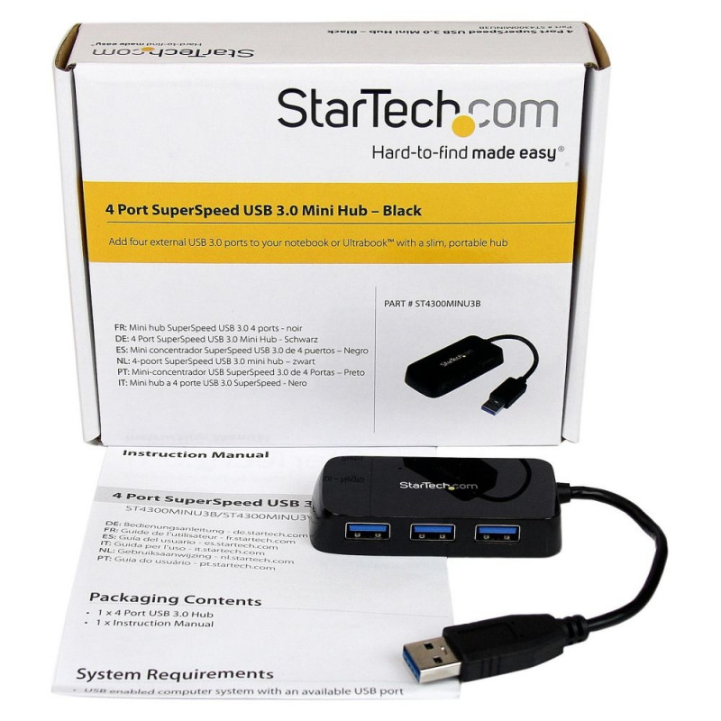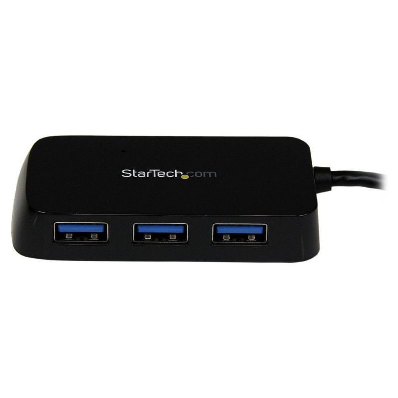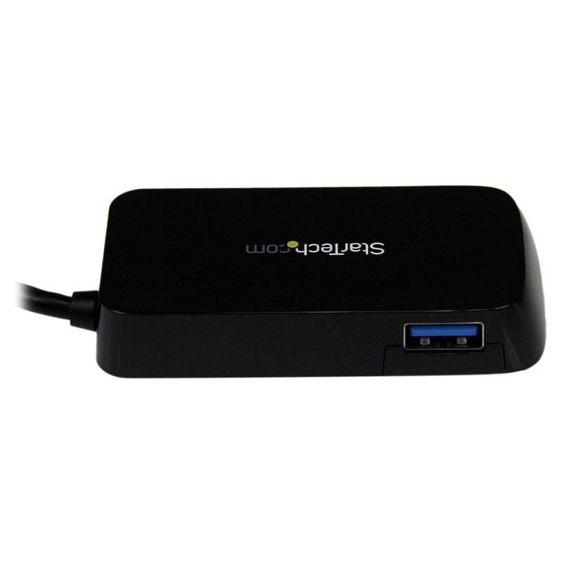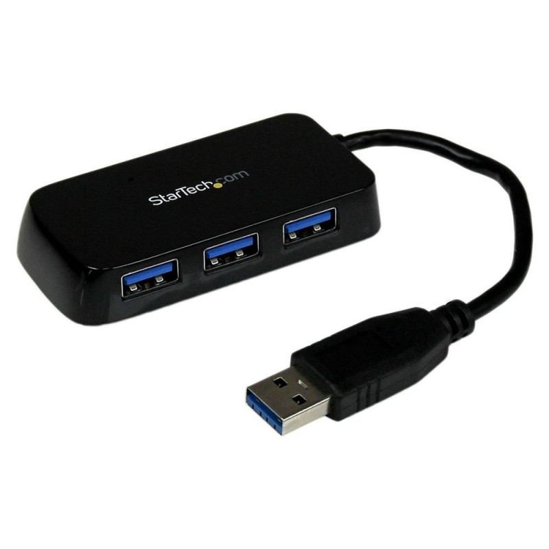 StarTech.com 4 Port USB 3.0 SuperSpeed Mini Hub -5Gbps - Must. Host-liides: USB 3.2 Gen 1 (3.1 Gen 1) Type-A, Jaoturi liidesed: USB 3.2 Gen 1 (3.1 Gen 1) Type-A. Andmeedastuskiirus: 5000 Mbit/s, Toote värv: Must, Korpuse materjal: Plastik. Toiteallikas: USB. Laius: 36 mm, Sügavus: 80 mm, Kõrgus: 14 mm. Pakendi laius: 165 mm, Pakendi sügavus: 130 mm, Pakendi kõrgus: 40 mm
