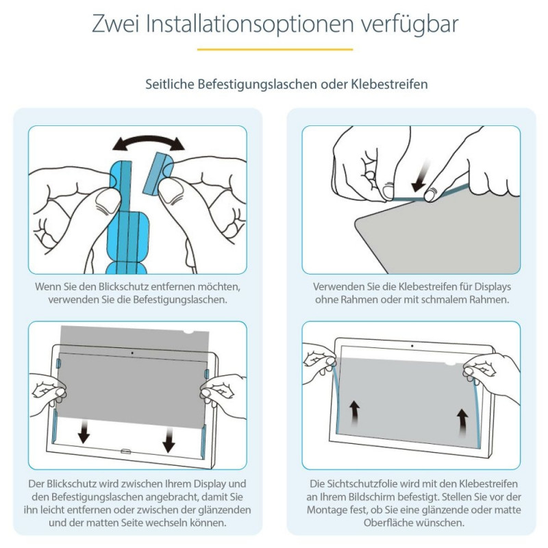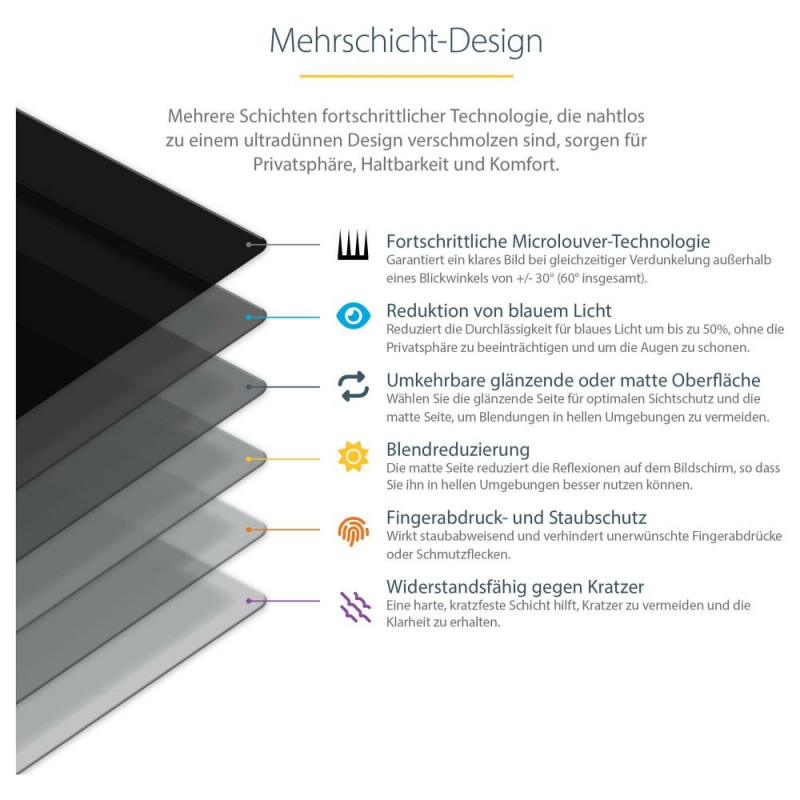 | Display-Filterfunktionen | Anti-Glanz, Privatsphäre |