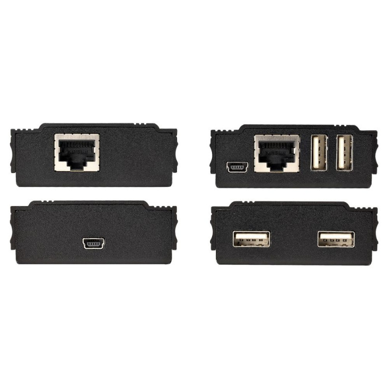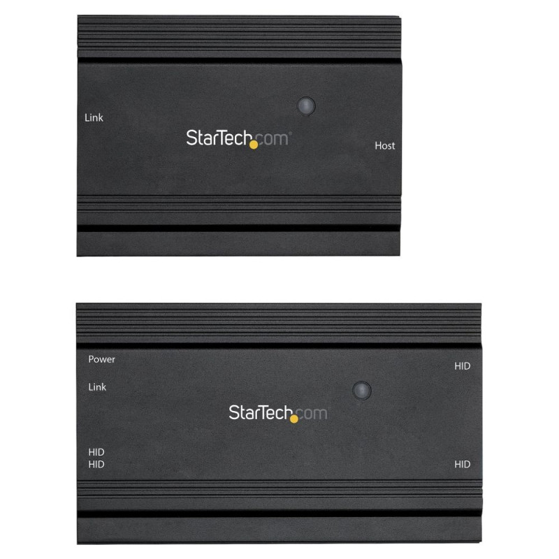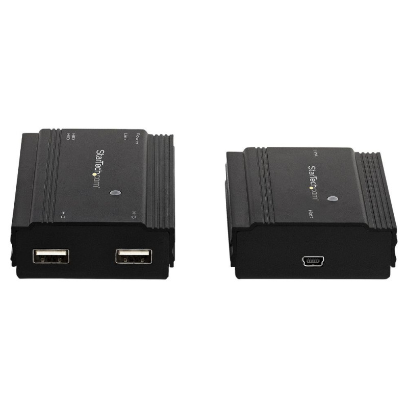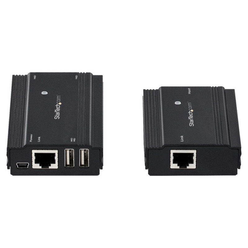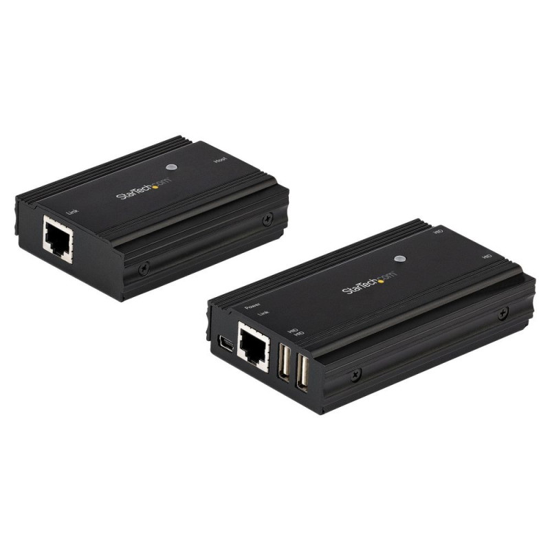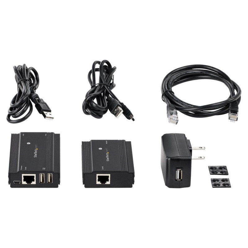 StarTech.com 4 Port USB 2.0 pikendus-jaotur üle ühe CAT5e/CAT6 Etherneti kaabli (RJ45) - 100 m - USB-pikendusjaoturi adapteri komplekt - metallist korpus - väline toiteallikas - 480 Mbit/s. Laius: 60 mm, sügavus: 100 mm, kõrgus: 22 mm. Komplekti kuuluvad kaablid: LAN (RJ-45), USB. Energiatarve (tavarežiimis): 10 W, sisendpinge: 100 - 240 V, väljundpinge: 5 V. Transpordikarbi laius: 410 mm, transpordikarbi pikkus: 323 mm, transpordikarbi kõrgus: 275 mm