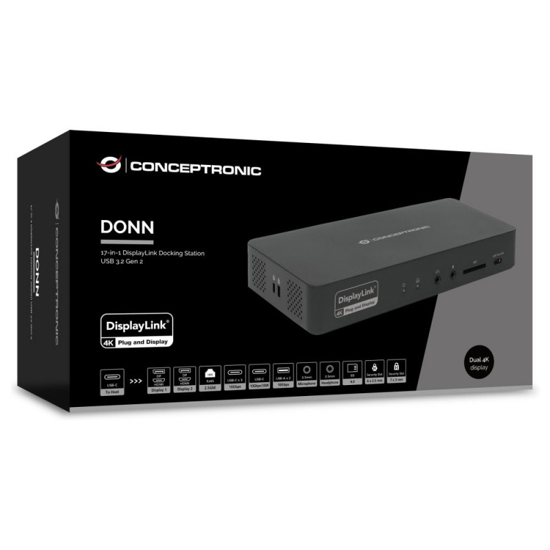 "CONCEPTRONIC 17-1 Dock USB-C->HDMI/DP/GbE/3xUSB-C/+ 135W sw"