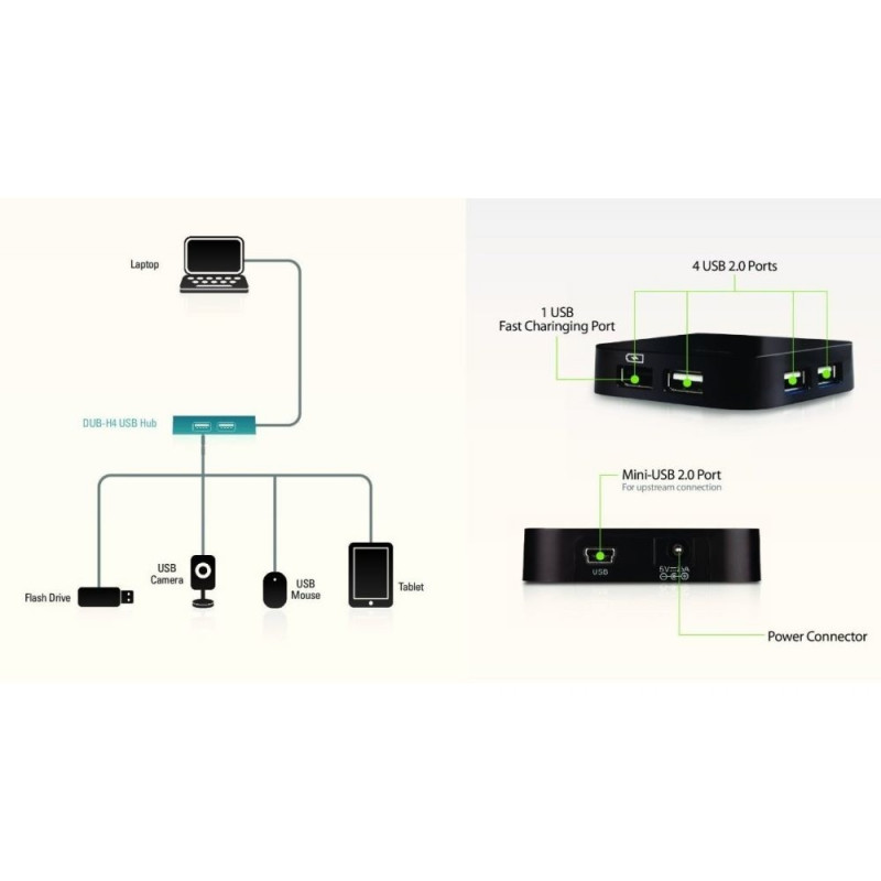 The D-Link 4-Port USB 2.0 Hub (DUB-H4) is an excellent choice for adding more USB ports to your computer for connecting your existing peripherals as well as adding the latest USB cameras and external storage devices.