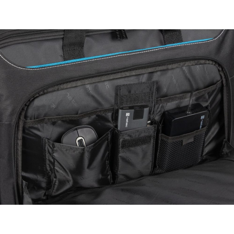 Not just for a laptopIf you use additional accessories, the Natec Doberman 17.3" will allow you to take them with you. Mesh pockets inside the main compartment and a front compartment will accommodate documents, your favorite mouse, a multiport, a portable drive, or a power bank. Pens and business cards can be stored in a special organizer. In the Natec Doberman 17.3", everything has its place.