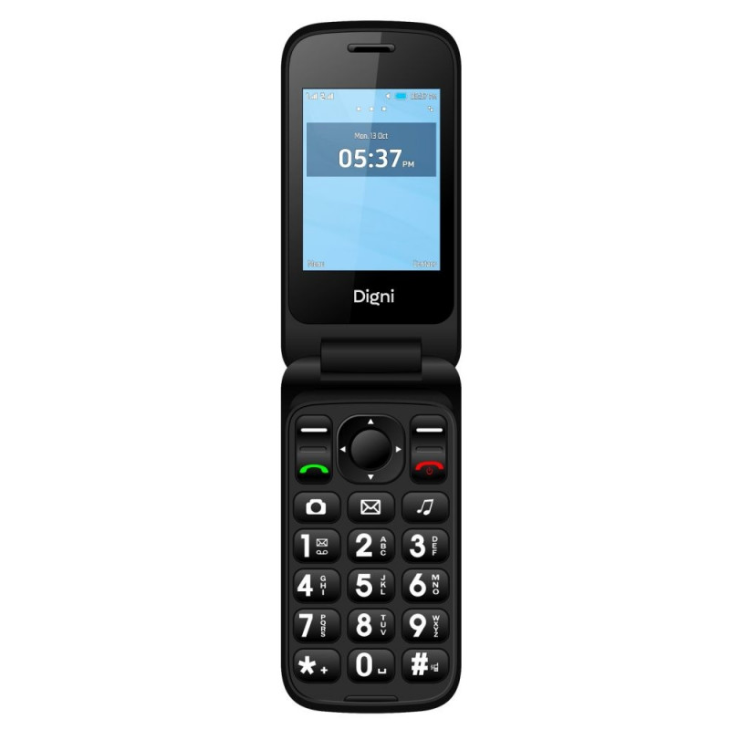 Making calls and sending texts has never been easier! Digni Flip was designed with a user-friendly keyboard with big buttons and clearly labelled keys that can be voiced for simple navigation. The font size on the keypad is also larger, ensuring maximum visibility and ease of use for seniors.
