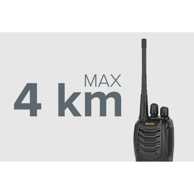 **Kuni 4 km ulatus**Kasutades Rebel raadiosaatja usaldusväärset ulatust, saad suhelda teistega ka pikkade vahemaade tagant. Seadme funktsionaalsust suurendab VOX-funktsioon, mis võimaldab käed-vabad režiimis vestelda, ilma et peaksid oma tööd katkestama.