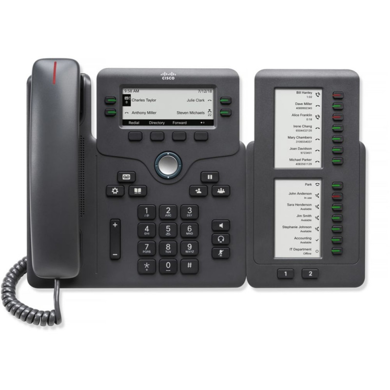 Cisco 6800-seeria laiendusmoodul, tuntud ka kui Cisco KEM (Key Expansion Module) 6800, on loodud spetsiaalselt Cisco 6800 IP-telefonide seeria jaoks, pakkudes kasutajatele täiendavat funktsionaalsust ja mugavust. See moodul on ideaalne lahendus ettevõtetele ja organisatsioonidele, kus on vaja hallata suurt hulka kõnesid, kontakte või kiirvalikuid, näiteks vastuvõtulauad, kõnekeskused või administraatorid. Laiendusmoodul võimaldab kasutajal jälgida ja hallata mitut liini või kõnet samaaegselt, suurendades töö efektiivsust ja parandades klienditeeninduse kvaliteeti.