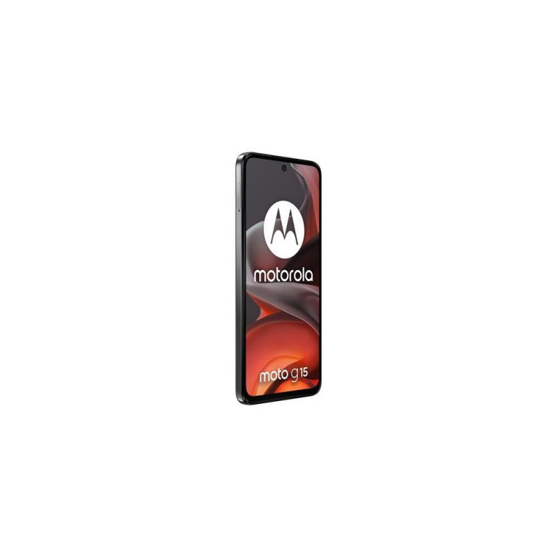 <b>Bigger. Bolder. Brighter.</b><br>moto g15 brings you cinematic entertainment at its best. Watch your favourite programmes and films come to life on a super sharp and bright 6.72” Full HD+ display – even outdoors in sunlight. Listen to sound all around thanks to powerful stereo speakers with bass boost and Dolby Atmos®. Capture beautifully detailed photos with the 50 MP(1) camera system, eliminating those annoying bars from artificial light sources. Fuel up fast with TurboPower™ charging(2) then go for longer with a 5200 mAh battery. Enjoy the premium look and feel of vegan leather, along with the protection of a water-repellent design(3) and Corning® Gorilla® Glass 3. Plus, experience fast performance and plenty of storage, so there’s always room for fun. Brighten each day with moto g15.Motorola moto g15. Display diagonal: 17.1 cm (6.72"), Display resolution: 2400 x 1080 pixels. Processor frequency: 2 GHz, Processor family: MediaTek, Processor model: Helio G81 Extreme. RAM capacity: 8 GB, RAM type: LPDDR4X, Internal storage capacity: 256 GB. Rear camera resolution (numeric): 50 MP, Rear camera type: Dual camera. SIM card capability: Dual SIM. Operating system installed: Android 15. Battery capacity: 5200 mAh. Product colour: Grey. Weight: 190 g