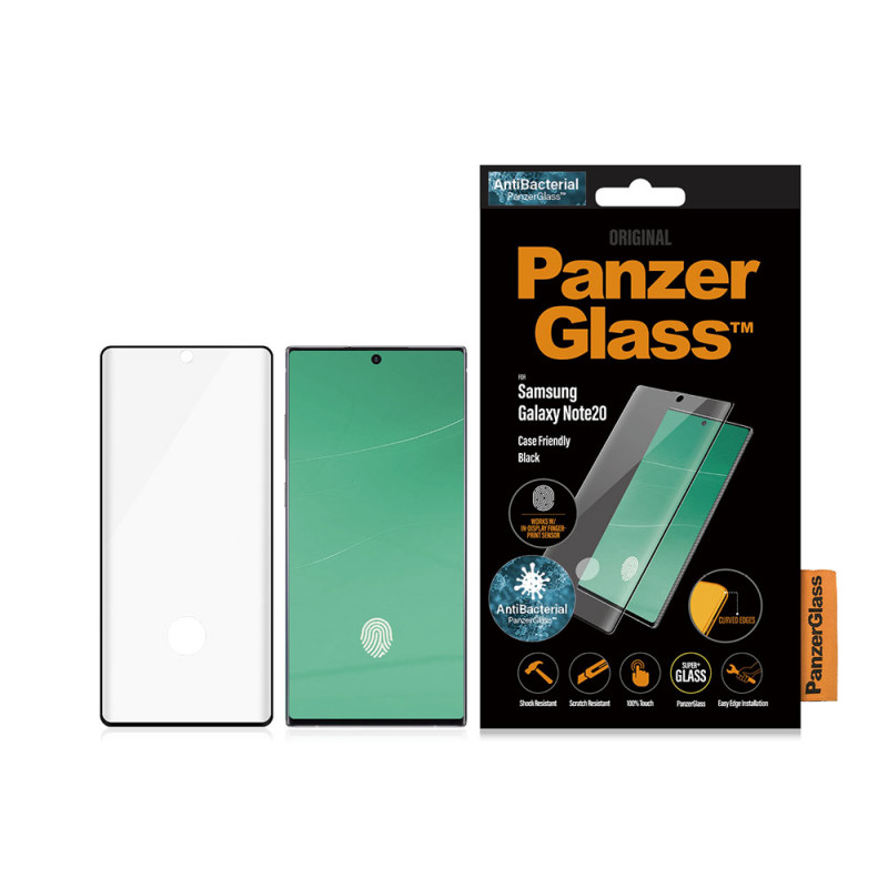 Kaitseklaas Samsung Galaxy Note20, sõrmejäljetoega, ümbrisesõbralik, kumera musta äärega, PanzerGlas