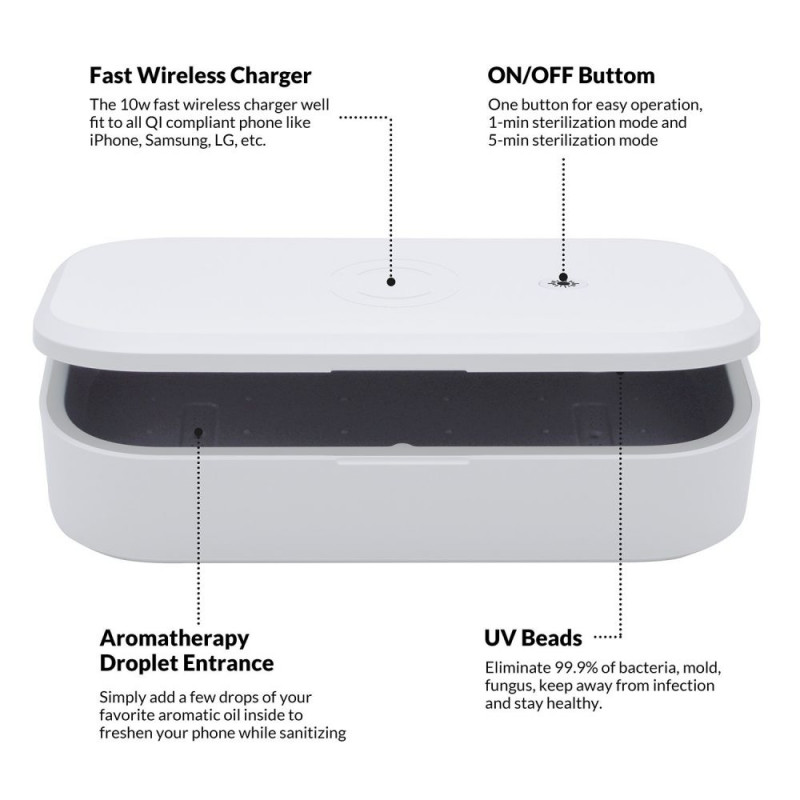 Telefoni desinfitseeritakse 1- või 5-minutilise puhastusprogrammiga. Lisaks telefonidele sobib puhastusseadme ultraviolettvalgus ka pangakaartide, võtmete, ehete ja muude pidevalt kasutuses olevate väikeste esemete jaoks.