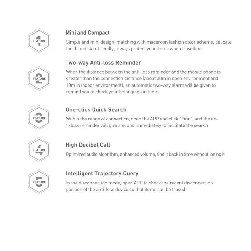 Kas unustate koju dokumendid, raamatud, rahakoti? Tänu sellele otsijale mäletate kõike. Seade hoolitseb selle eest, et te ei läheks liiga kaugele, kus ühendus on juba kadunud. Kui te eemaldate konkreetsest objektist, hoiatab teid selle eest alarm. See töötab 30 meetri kaugusel avatud ruumis ja 10 meetri kaugusel siseruumides.