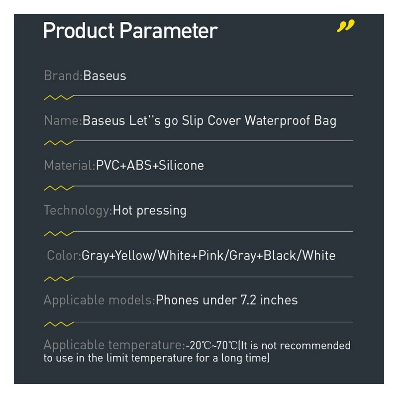 - Nimi: Baseus Let's go Slip Cover Waterproof Bag
