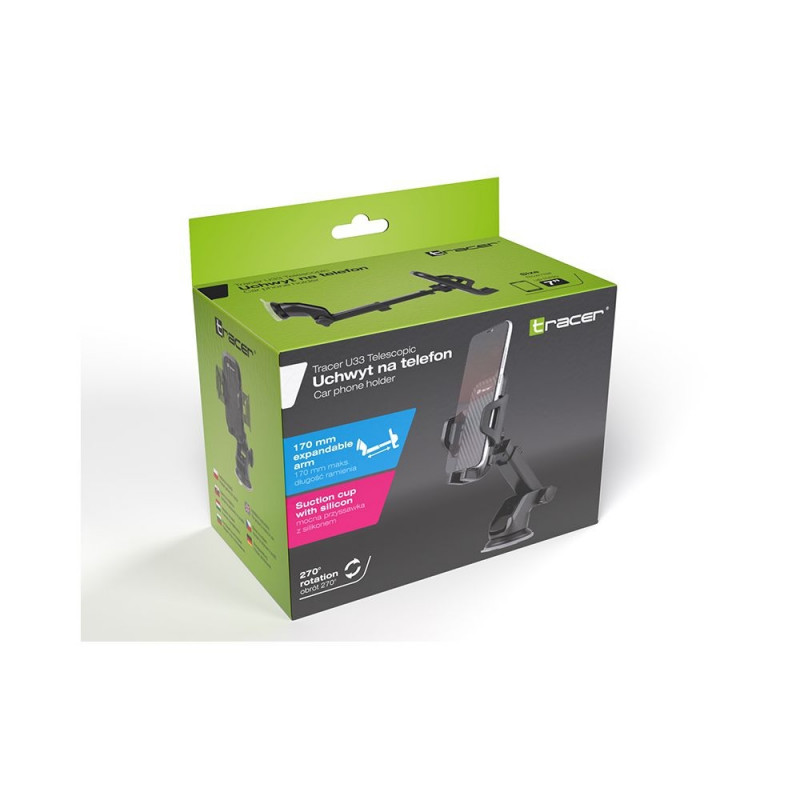 • Mõeldud nutitelefonidele, mille diagonaal on kuni 7”. • Iminapp, mis võimaldab paigaldada seadme tuuleklaasile või kokpitile. • 170 mm pikendatav vars. • 270 kraadi pöörlemine. • Tugev ja vastupidav materjal. • Stabiilne käepide.TEHNILISED ANDMED Autole (aken): jah Lauakinnituse jaoks: jah