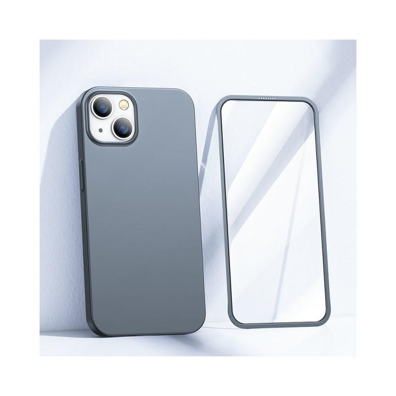Joyroom 360 Full Case front and back cover for iPhone 13 + tempered glass screen protector grey (JR-