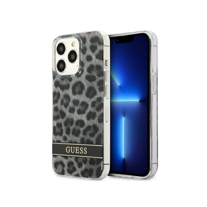 Guess Leopard Electro Stripe - Etui iPhone 13 Pro (Grey)