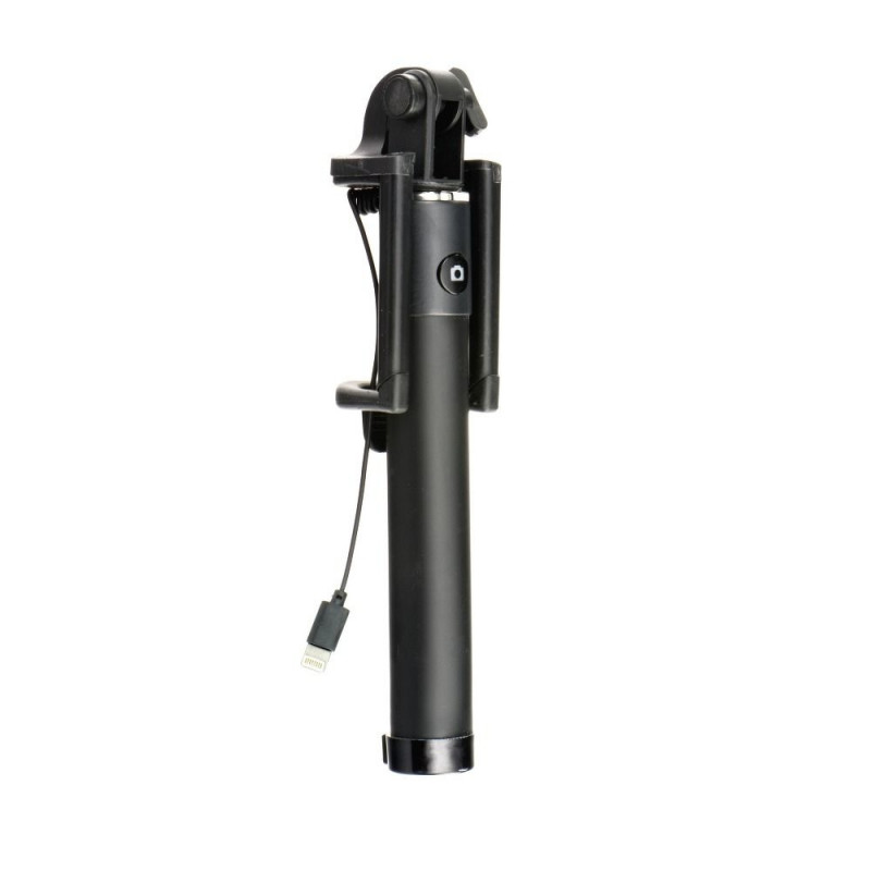 Universal selfie stick, enabling taking pictures without having to use the self-timer. Includes remote wireless Bluetooth. With Lightning. The handle has an adjustable tilt angle with a value of 180 degrees, which allows you to adjust the inclination of the device to the needs of the image. Long adjustable handle offers the possibility of recognition, carried out a large picture of the image. Monopod also has additional, universal mount on the phone. Reinforced adjustable and rigid head allows you to maintain full stability position even in difficult conditions, and the rubber handle prevents the handle from falling out of hand. Built nut controls allows for proper positioning and stable mounting a camera and standard mounting thread 1/4" on the bottom of the handle allows you to connect it to another part of the thread eg camera tripod. Connector: Lightning The maximum height: 97cm Minimum: 27cm Weight: 153g Bounce thread: 1/4 Maximum load: 0,5 kg