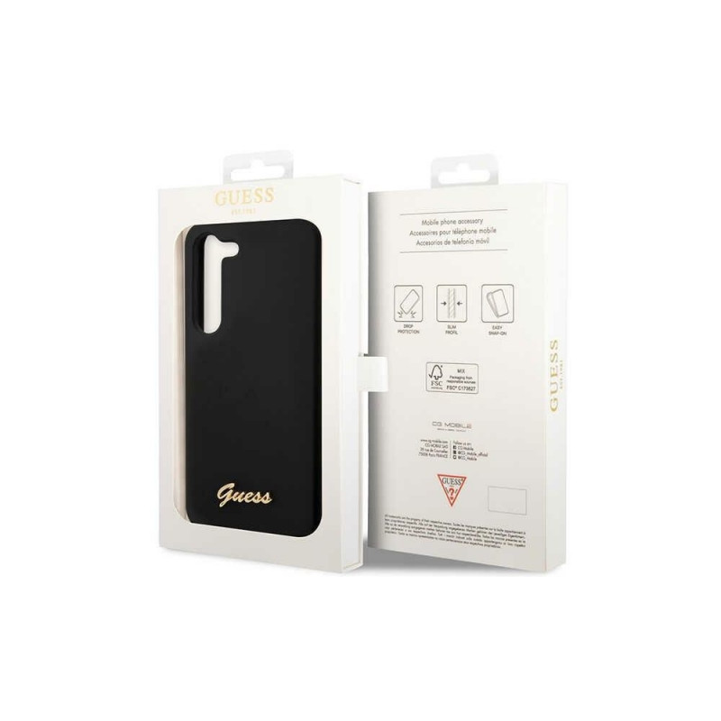 Guess GUHCS23MSLSMK S23+ S916 black/black hardcase Silicone Vintage Gold Logo