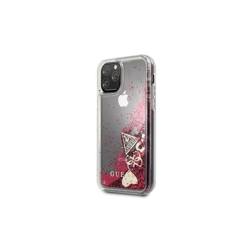 Guess GUHCN58GLHFLRA iPhone 11 Pro 5.8" vaarikapunane kõva ümbris sädelevate südametega