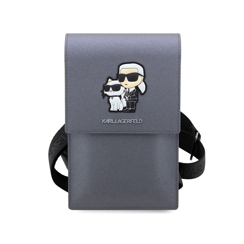 Karl Lagerfeld handbag for phone KLWBSAKCPMG silver hardcase Phone Pounch Universal Saffiano K&C