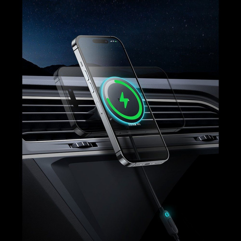 Funktsionaalne Baseus CW01 autolaadija on varustatud 25W USB-A pordiga ning 15W MagSafe laadija hoidikuga õhuavadele. See kombinatsioon võimaldab sul turvaliselt laadida nii oma iPhone’i kui ka kaasreisija seadet, sõltumata tema telefoni ühendustüübist! Laadijal on LED-valgustus, mis näitab ka laadija hetkeolekut.