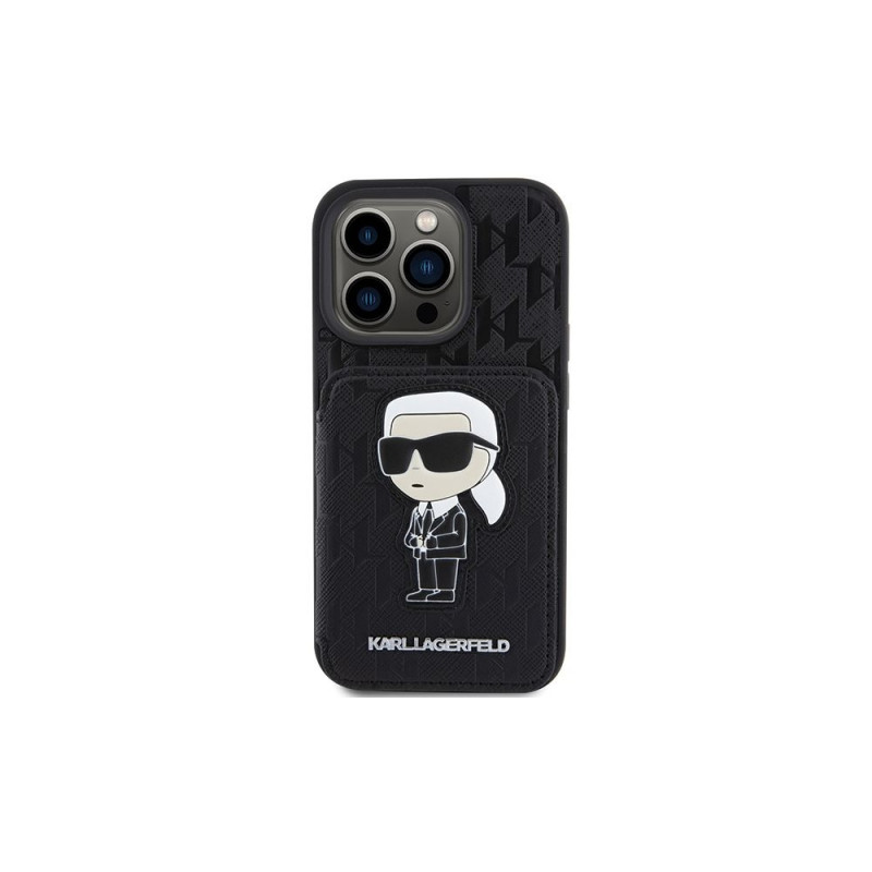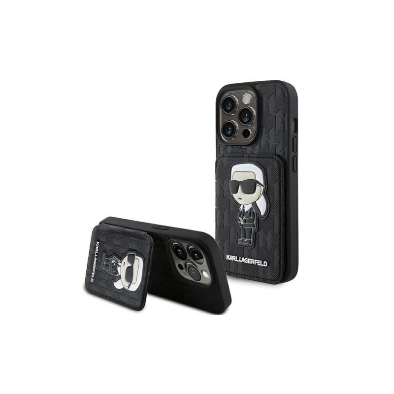 Karl Lagerfeld Saffiano Cardslots and Stand Monogram Ikonik Patch case for iPhone 15 Pro Max - black