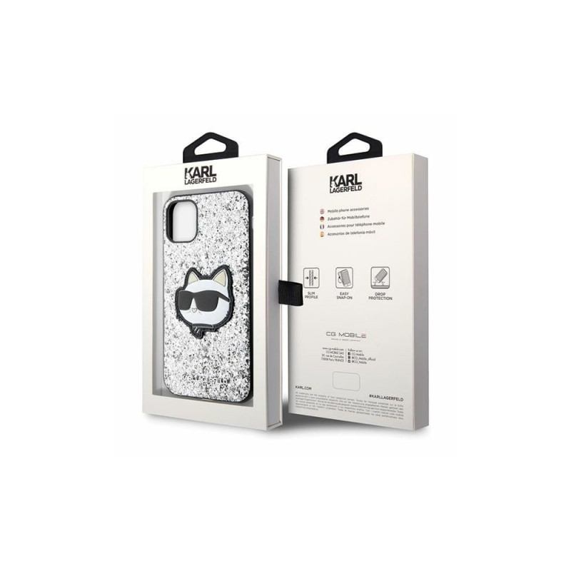 Originaalkott KARL LAGERFELD Glitter Choupette Patch KLHCN61G2CPS Iphone 11| Xr jaoks hõbedane