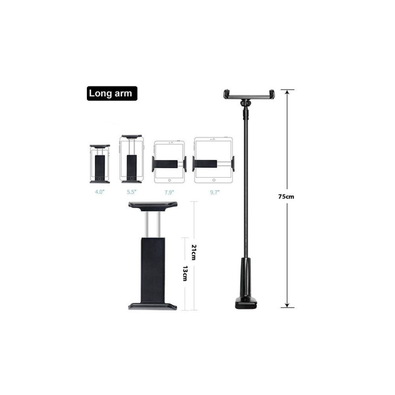 UNIVERSAALNE PIKA VARRUKAASTE HALUS. Võimas jõud, kohaldatav mobiiltelefoni jaoks 4-6,5 tolliga, Kasutage iphone7/plus/6/6s plus, galaxy note, android ja UP TO 10.5 tablettide jaoks. Hoidja avanemise laius: 125~190mm Aluse avanemise laius: 5~82 mm