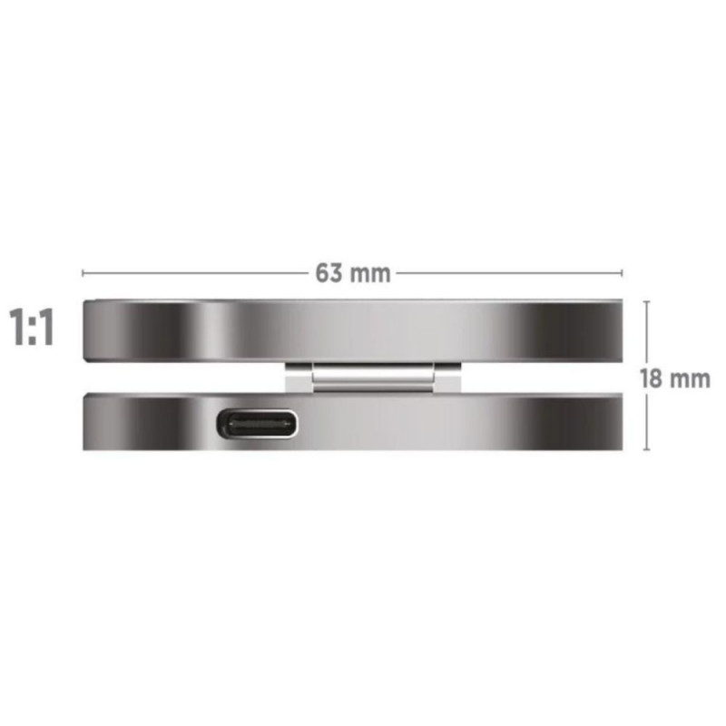 - AirPods - 5W - Mõõtmed: 63 x 63 x 18mm
