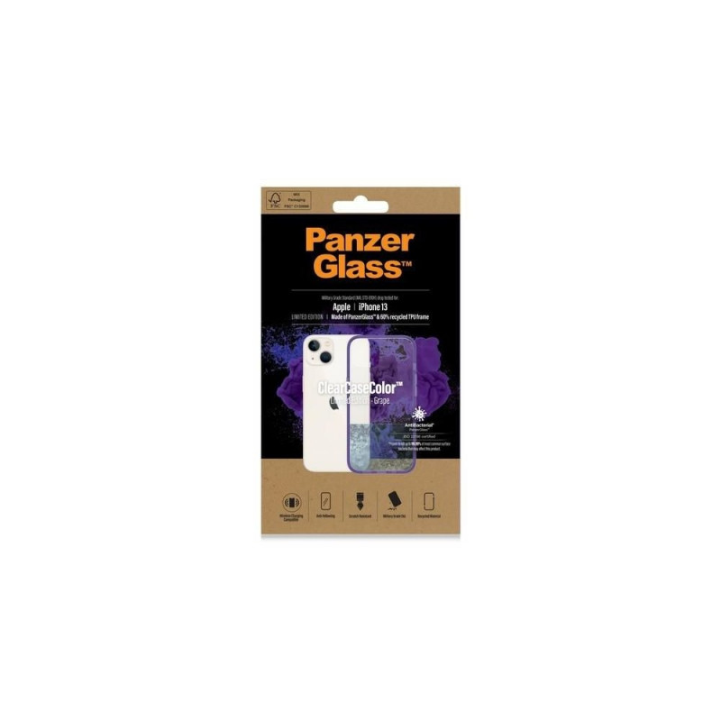 The strongest and most environmentally friendly product line for iPhone 13. We have significantly improved durability and focused on using ecological materials in the production process. The product is Military Grade certified (MIL-STD-810H), meaning it has passed tests to demonstrate phone protection in case of a fall. The PanzerGlass™ ClearCase™ is designed to protect the phone from damage without compromising its aesthetic value. The case combines flexible TPU polyurethane and hard tempered PanzerGlass™ glass for durability and comfort. The materials used prevent yellowing from sunlight and other factors, and the case has an antibacterial coating that kills 99.99% of bacteria.