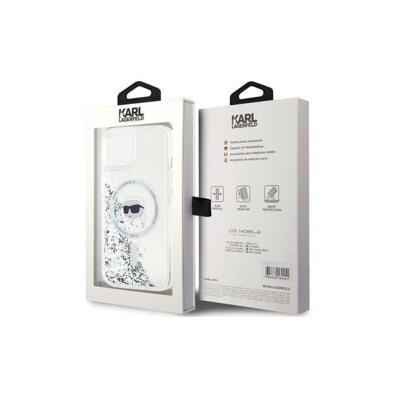 Karl Lagerfeld Liquid Glitter Karl Head MagSafe case for iPhone 15 / 14 / 13 - transparent