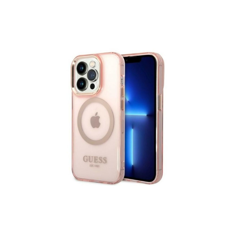 2 Preces bez IMEI/SN Guess Guess GUHMP14LHTCMP iPhone 14 Pro 6.1" pink/pink hard case Gold Outline Translucent MagSafeOsta kohe, viimased eksemplarid laos!