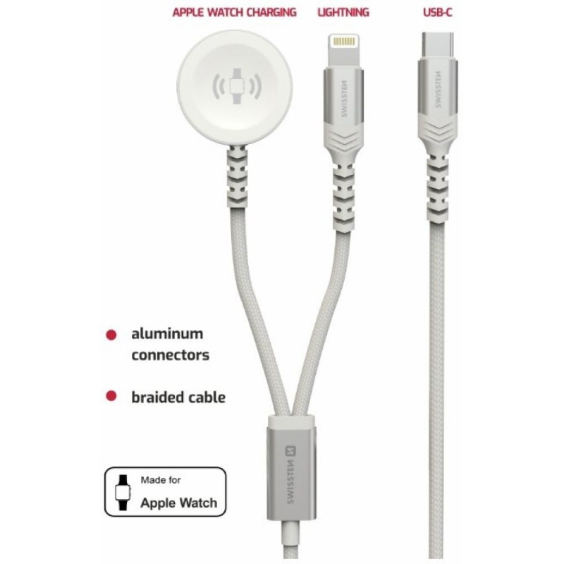 Swissten Wireless Charger 2in1 Apple Watch and Lightning USB-C 1.2m