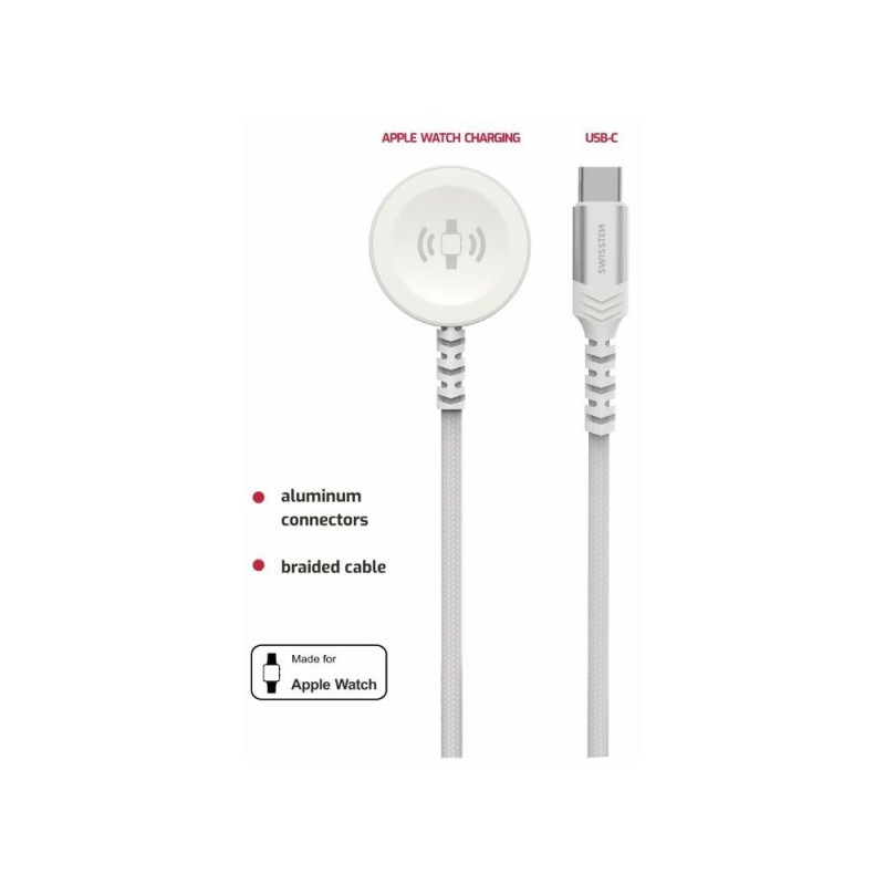Swissten Braided Metal Magnetic Wireless Charger For Apple Watch USB-C 1.2m