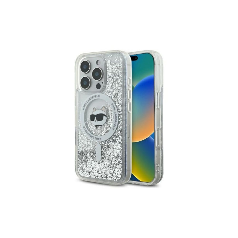 Karl Lagerfeld Liquid Glitter Choupette Head MagSafe – iPhone 16 Pro Max läbipaistev ümbris