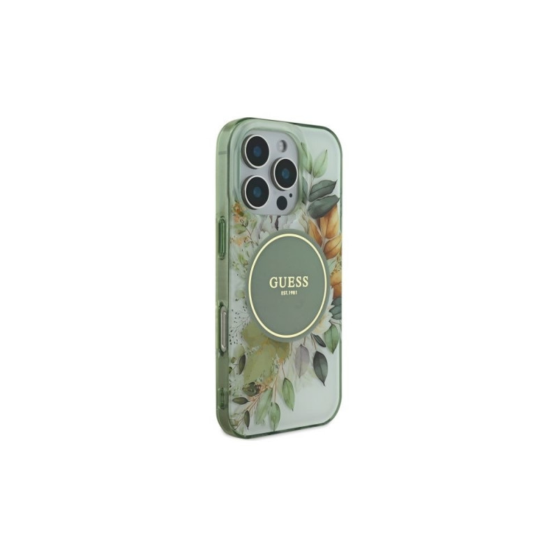 Guess IML Flower & Tonal Circle MagSafe case for iPhone 16 Pro - green