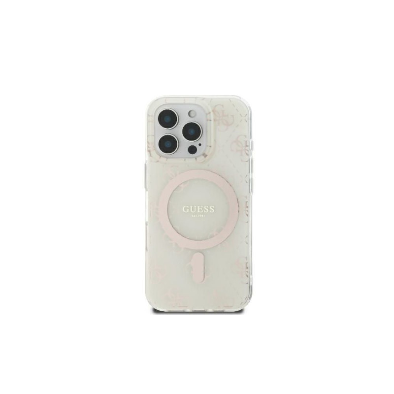 Lisa stiili ja šikki!Ümbrise keskosas on uhkelt esindatud Guess'i logo, mis peenelt rõhutab brändi prestiiži. Ümbrist kaunistab õrnates toonides MagSafe'i rõngas, mis sobib ideaalselt ümbrise üldise disainiga. Lisaks on kogu ümbrise pind kaetud 4G mustriga, mis on Guess'i brändi klassikaline disainilahendus. See täiuslik funktsionaalsuse ja peene välimuse kombinatsioon muudab sinu telefoni mitte ainult suurepäraselt kaitstuks, vaid ka stiilseks aksessuaariks.