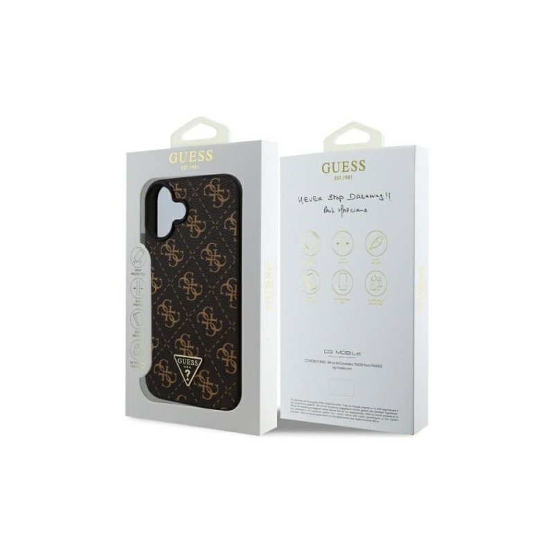Lisa stiili ja šikki!Legendaarne 4G muster, hoolikalt trükitud ökoloogilisele nahale, annab ümbrisele ainulaadse iseloomu ja muudab iga selle kollektsiooni ümbrise sinu telefoni eriliseks kaunistuseks. 4G motiiv on kantud nahaga kontrastset värvi ja sobitub suurepäraselt ökoloogilise naha elegantse tekstuuriga, luues unikaalse ja disainitud visuaalse efekti. Selle peene kollektsiooni täienduseks on moemaja Guess kolmnurkne logo, mis kinnitab toote autentsust ja kõrgeimat kvaliteeti.