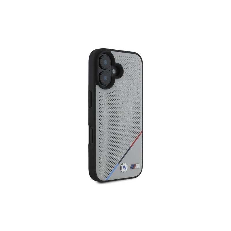 BMW M Perforated Tricolor Line MagSafe iPhone 16 Case - Gray