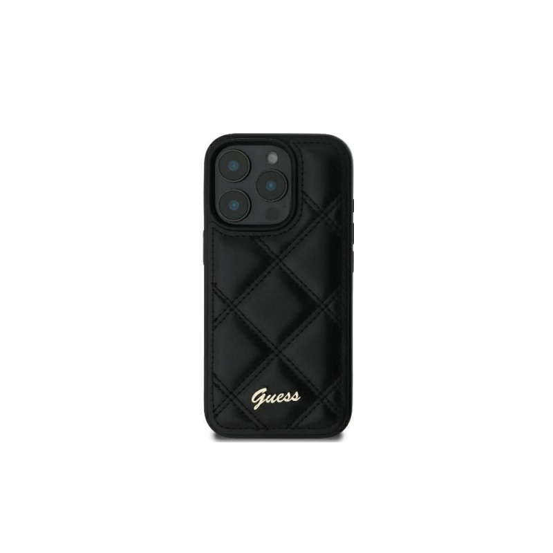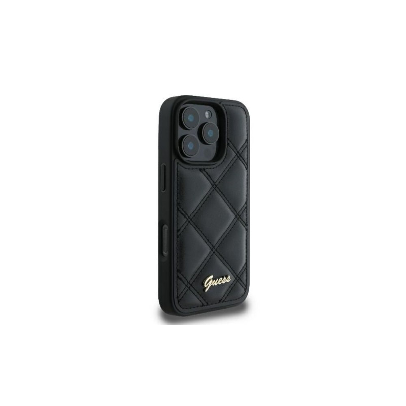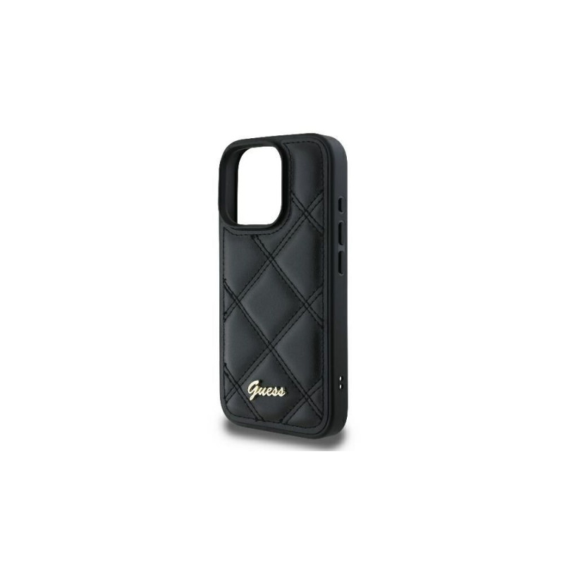 Guess Quilted Metal Logo iPhone 16 Pro Case - Black