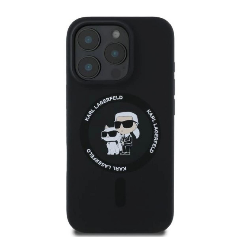 Karl Lagerfeld Silicone Karl&Choupette Heads Ring MagSafe Case for iPhone 16 Pro - Black