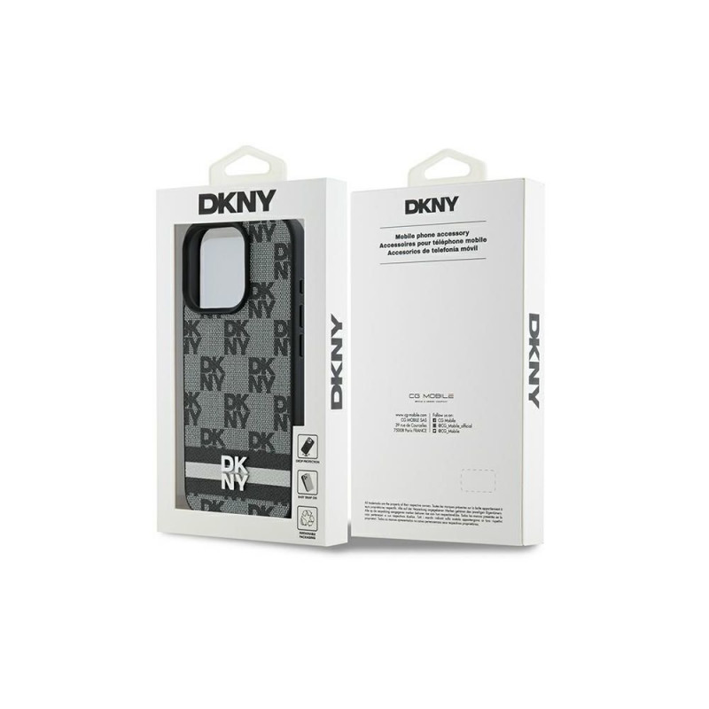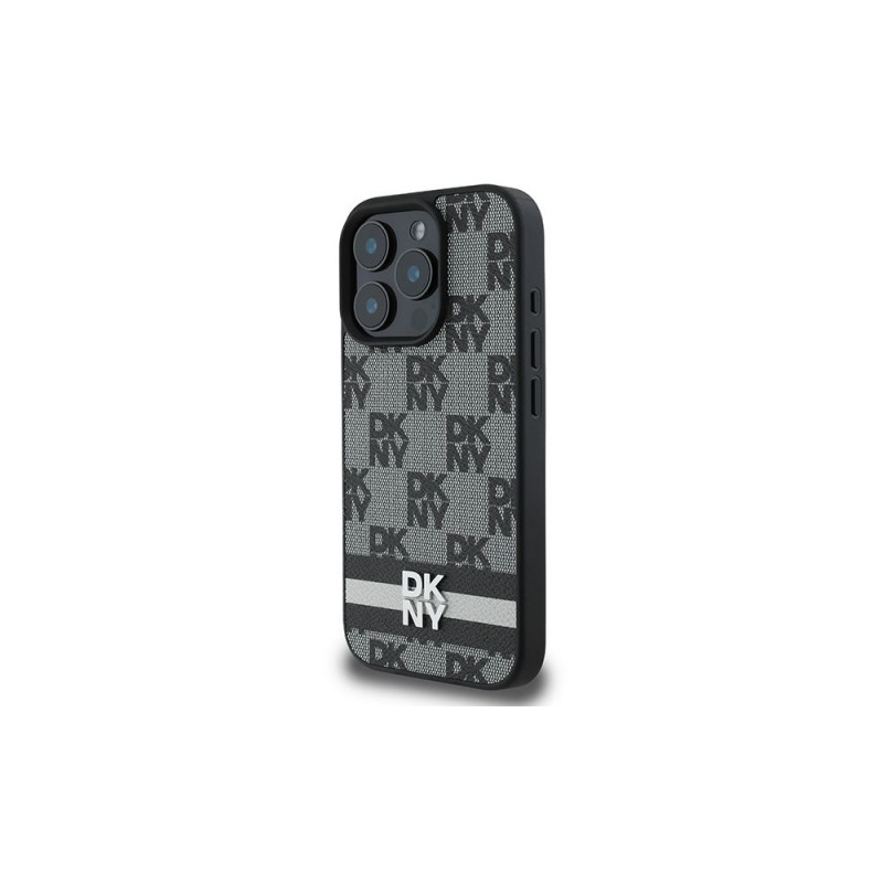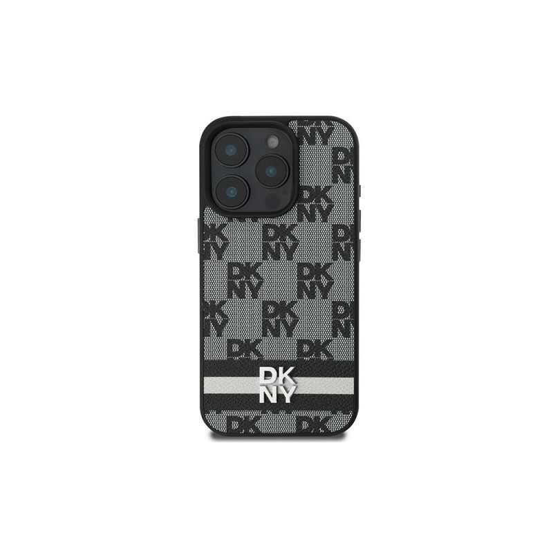 DKNY Checkered Pattern & Printed Stripes Case for iPhone 16 Pro - Black