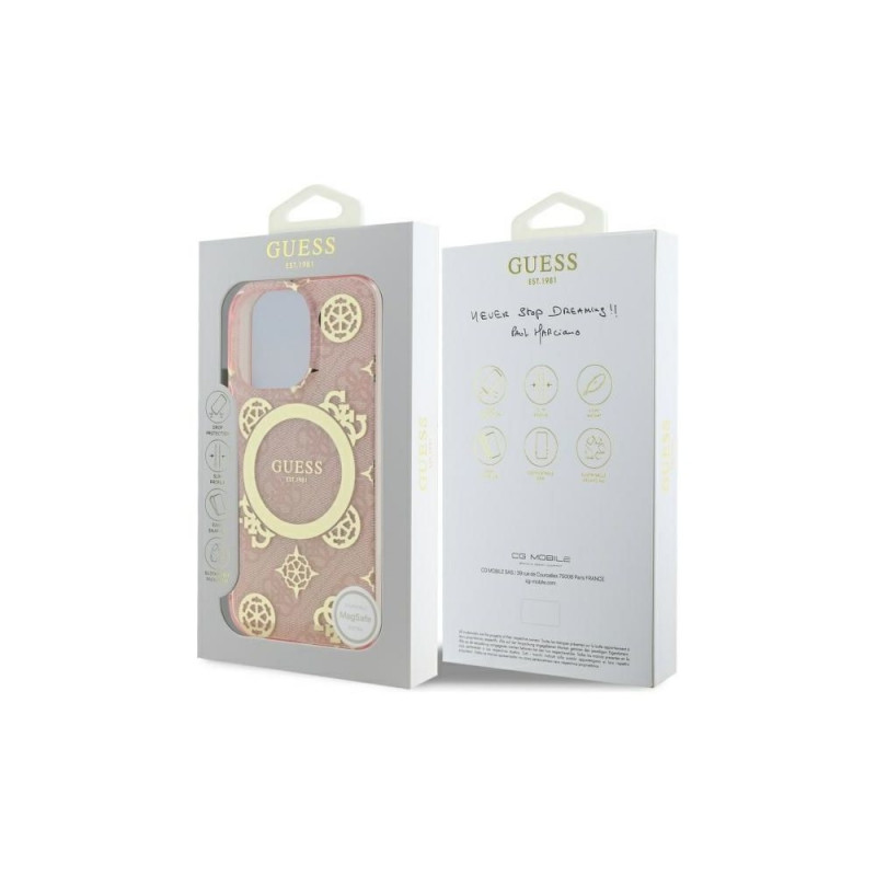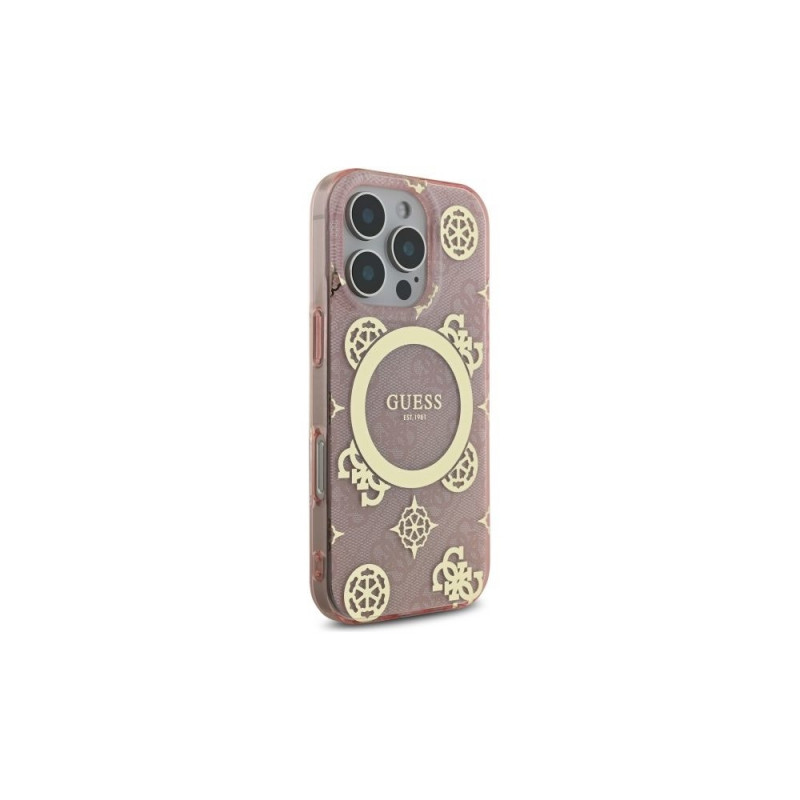 Guess IML Peony On 4G Background MagSafe Case for iPhone 16 Pro - Pink