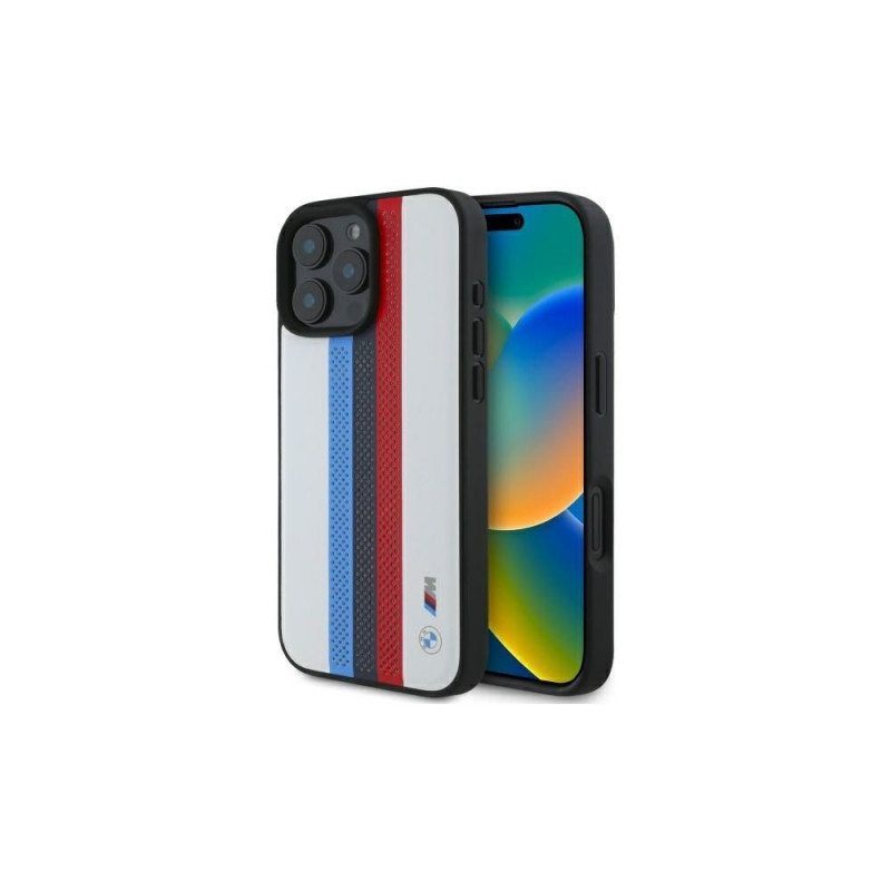 BMW M Performance Tricolor Printed Stripes MagSafeMagSafe iPhone 16 Pro Max Case - White