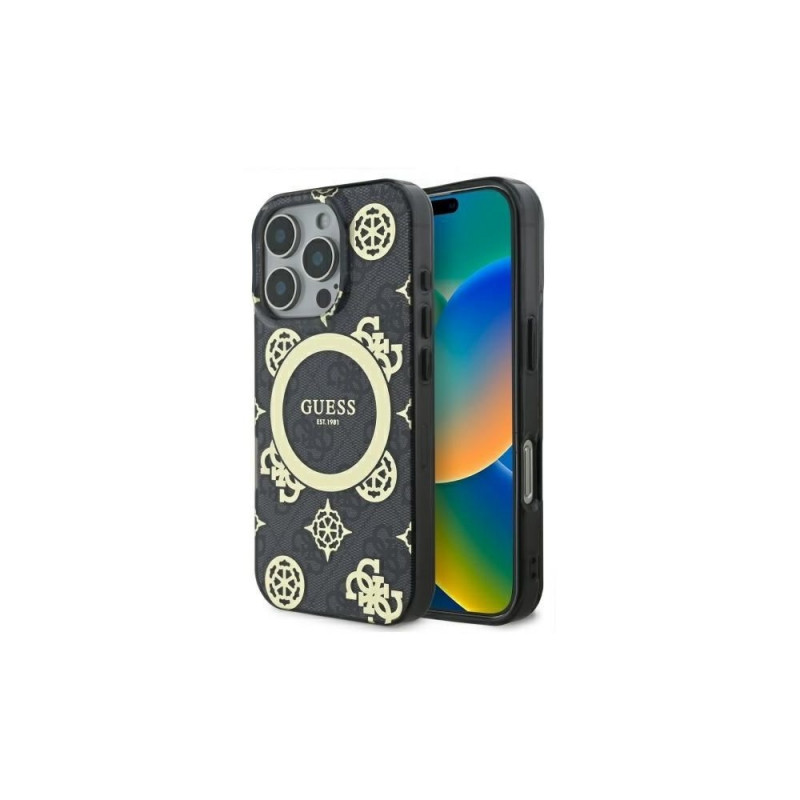 Guess Guess GUHMP16LH4PYEEK iPhone 16 Pro 6.3" black/black hardcase IML Peony On 4G Background MagSa