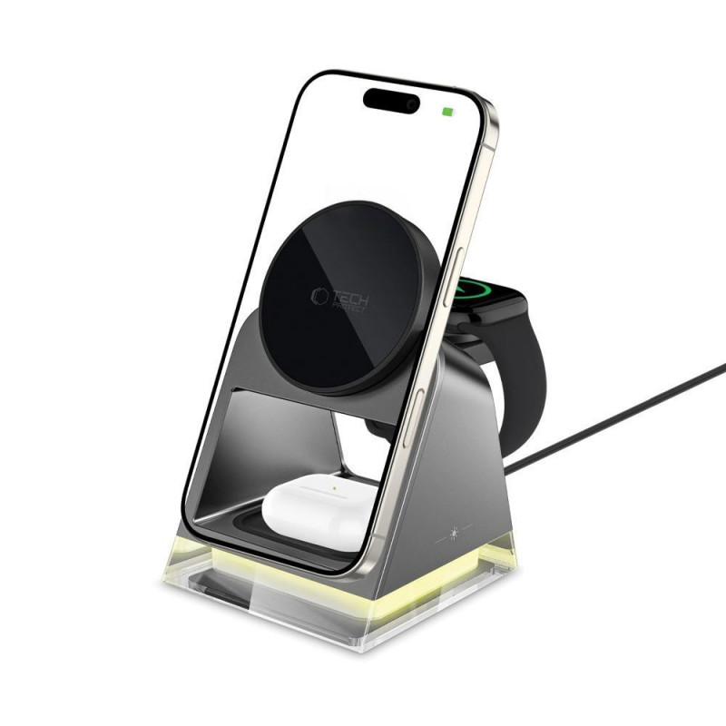 TECH-PROTECT QI15W-A43 3IN1 MAGNETIC MAGSAFE WIRELESS CHARGER BLACK