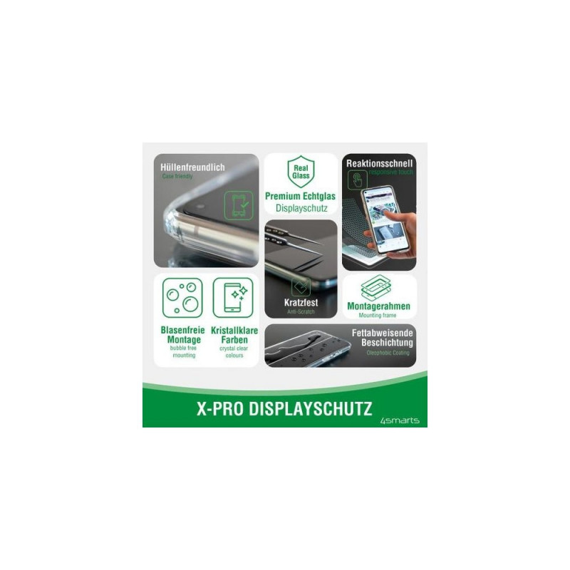 The 4smarts X-Pro series is a synonym for outstanding quality: carefully selected raw materials in combination with state-of-the-art manufacturing processes result in unparalleled protection, ultra-high glass transparency, precise contours and last but not least maximum usability. The X-Pro screen protector acts like a real bulletproof glass, which in Germany we actually call “Panzerglas”.<br><br>The high-performance adhesive ensures a bubble-free and secure hold on the display, and can be removed just as easily without leaving any residue when replacing the screen glass. Tempered glass screen protectors are easier to apply than conventional plastic protective film or foil. The X-Pro series screen guards are "case friendly", i.e. compatible with the most common phone cases.4smarts 496196. Brand compatibility: Apple, Compatibility: iPhone 13 / 13 Pro, Protection features: Dirt resistant, Scratch resistant. Material: Tempered glass, Product colour: Transparent. Quantity per pack: 1 pc(s)