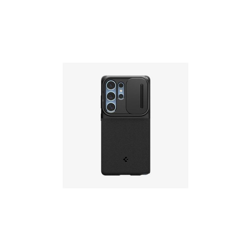 Shoot your best shot. Snap-on Optik Armor on your Galaxy S25 for lens protection at all angles. Its camera protector slides on and off smoothly, making sure you’re maintaining good optics without the extra bulk. Capture the moment without holding back.<br><br><b>Optik Armor Case.</b><br>Keep a good outlook on every angle.<br><br><b>Do you. We got you.</b><br>Defends daily with a sleek silhouette.<br><br><b>Snap Lens Protection Tech.</b><br>Unique camera design opens and closes smoothly for easy access.<br><br><b>Protection you can trust.</b><br>Air Cushion™ Technology absorbs and mitigates all impacts in each corner.<br><br><b>We know slim protection.</b><br>Engineered to protect and stay slim with over 10 years of experience and innovation of crafting cases.<br><br><b>Simply charge on with the case on.</b><br>We know it's a hassle to take the case off. So, simply charge on with the case on. Spigen cases are compatible with wireless charger.Spigen Galaxy S25 Ultra Case Optik Armor Black. Case type: Cover, Brand compatibility: Samsung, Compatibility: Galaxy S25 Ultra, Maximum screen size: 17.5 cm (6.9"), Surface coloration: Monochromatic, Product colour: Black