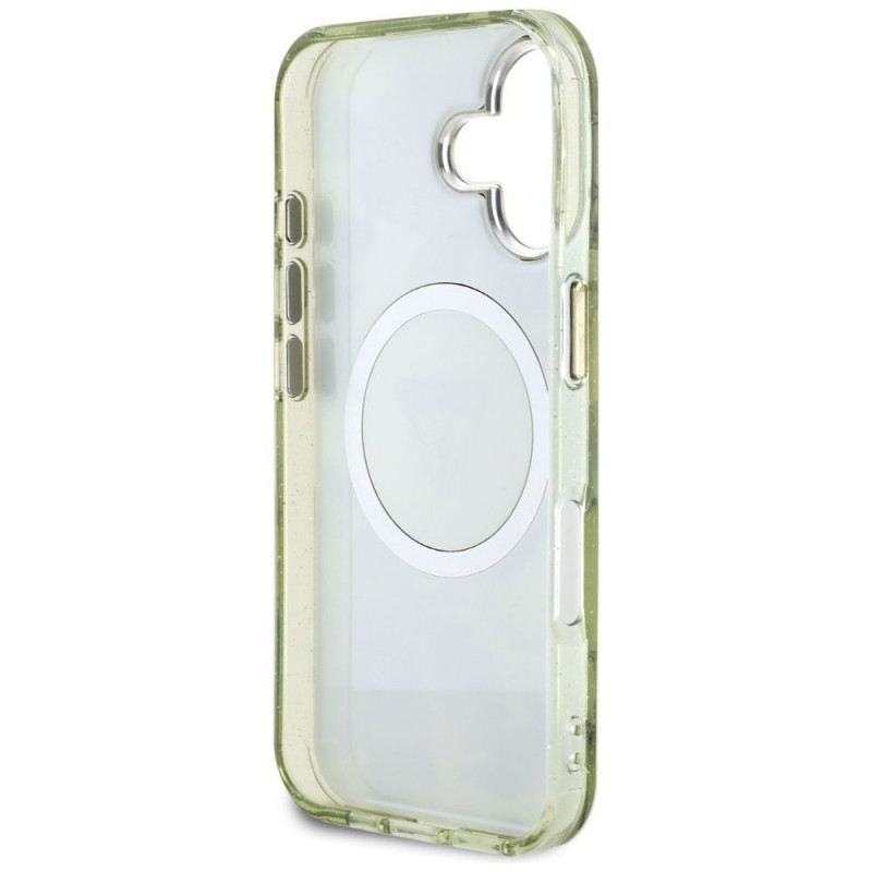 Guess Glitter Flowers Triangle Buttons MagSafe ümbris iPhone 16-le roheline