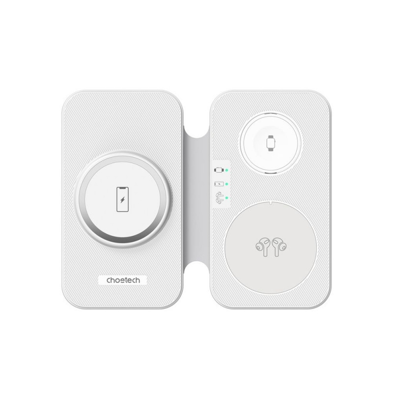 **Paindlikud laadimisvõimalused**Choetech T616-F pakub mitmeid laadimisviise – saate laadida kõiki oma seadmeid korraga, tagades tõhusa ja kiire energiavarustuse. Valige horisontaalne laadimine, et mugavalt filmi vaadata või videokõnet pidada ilma laadimist katkestamata, või voltige laadija kokku ja reguleerige selle nurka vastavalt oma vajadustele. See valikuvabadus tagab maksimaalse mugavuse ja võimaldab teil jääda täielikult mobiilseks. iPhone'i, iWatchi ja AirPodide samaaegne laadimine muudab teie seadmete igapäevase kasutamise veelgi lihtsamaks.