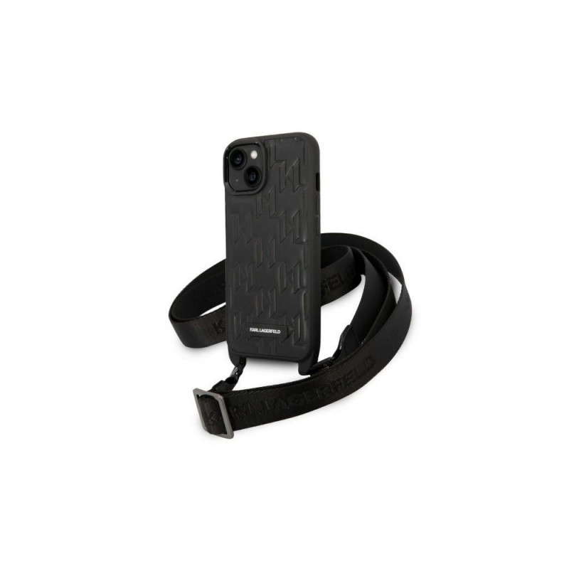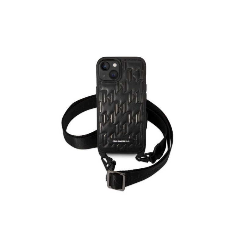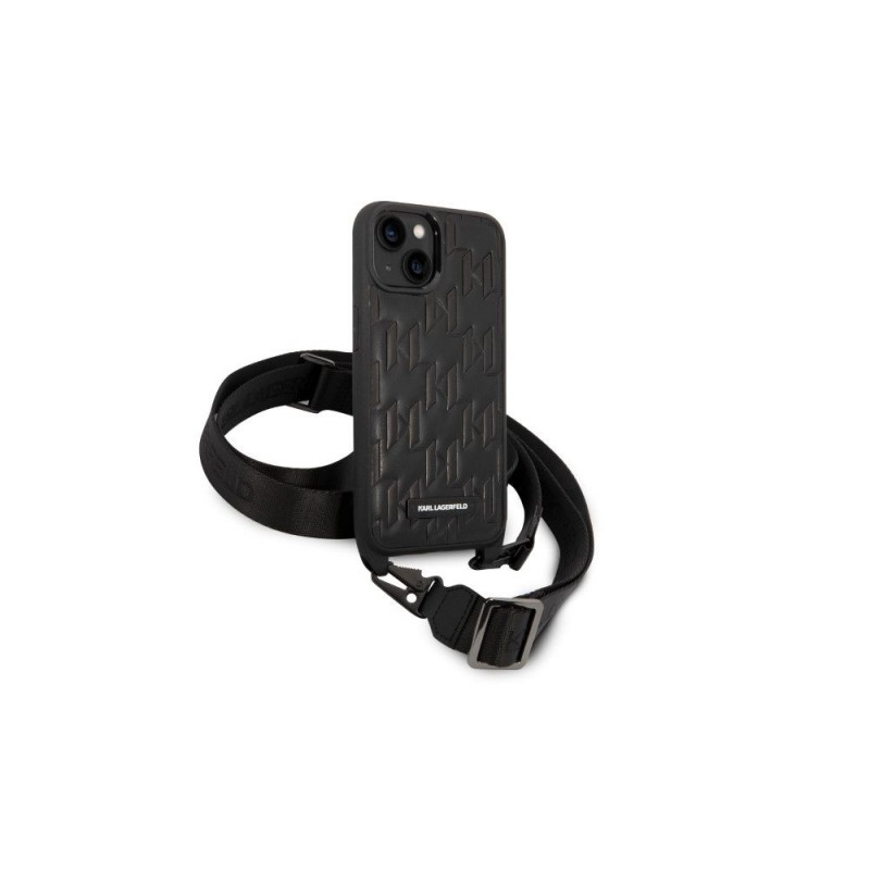 Karl Lagerfeld Monogram Plaque Logo Strap Case for iPhone 14 / 15 / 13 6.1" - Black