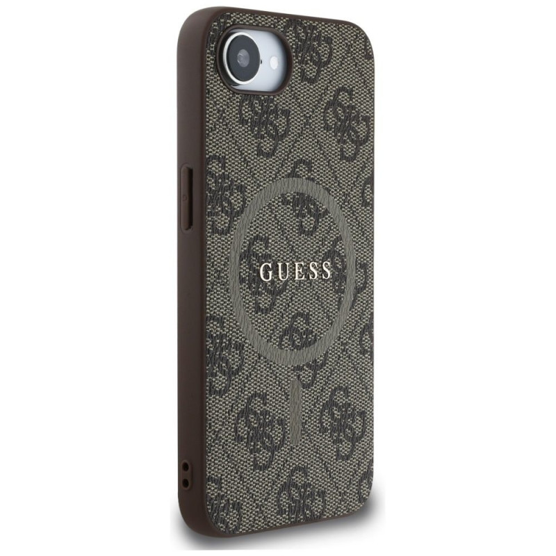 Guess 4G Ring Classic Logo MagSafe ümbris iPhone 16e pruun