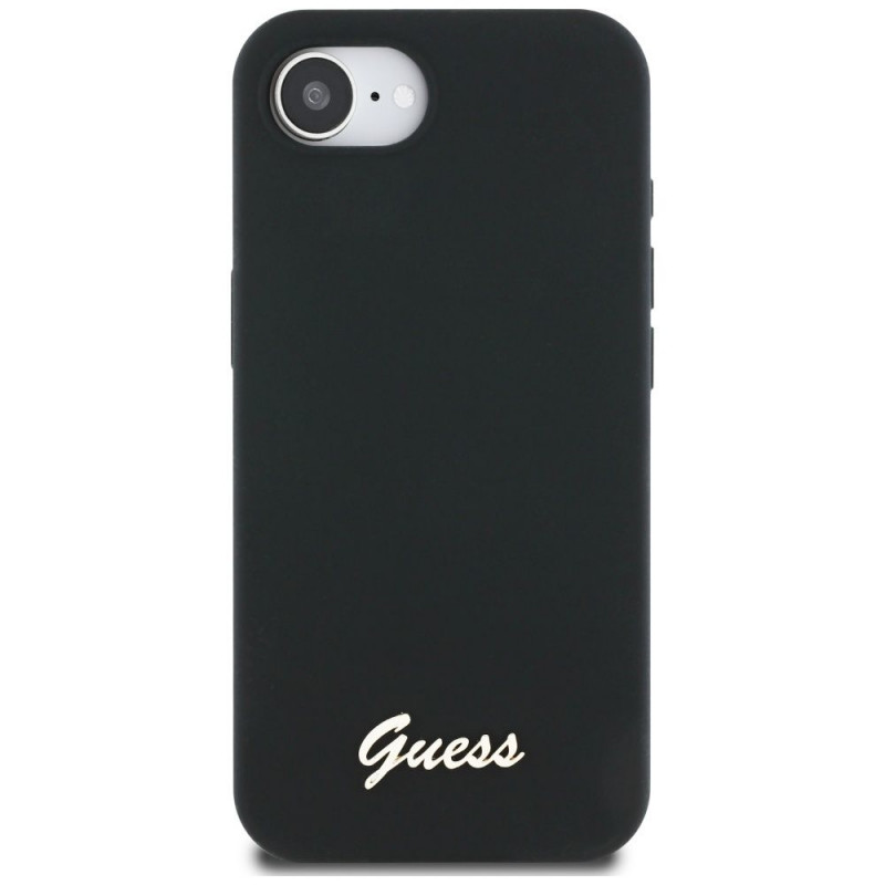 Guess Silicone Script Metal Logo MagSafe iPhone 16e Case - Black